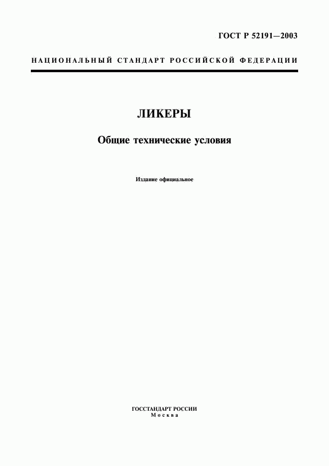 ГОСТ Р 52191-2003 Ликеры. Общие технические условия