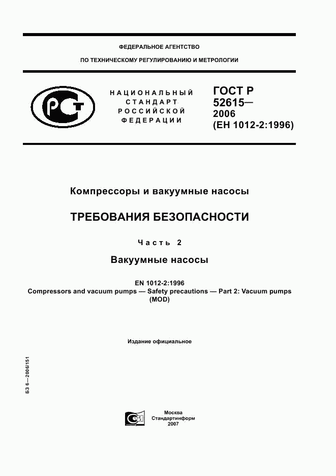 ГОСТ Р 52615-2006 Компрессоры и вакуумные насосы. Требования безопасности. Часть 2. Вакуумные насосы