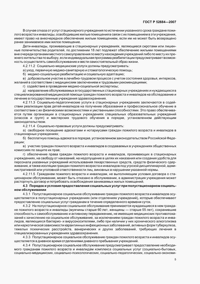 ГОСТ Р 52884-2007 Социальное обслуживание населения. Порядок и условия предоставления социальных услуг гражданам пожилого возраста и инвалидам