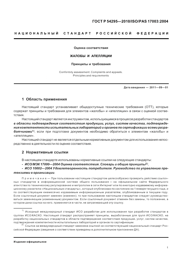 - Настоящий стандарт устанавливает общедоступные технические требования, которые содержат принципы и требования для элементов «жалобы» и «апелляции» в связи с оценкой соответствия. Настоящий стандарт является инструментом, использующимся в процессе разработки стандартов в области подтверждения соответствия продукции, услуг, систем качества, подтверждения компетентности испытательных лабораторий и органов по сертификации всеми разработчиками, если при подготовке документов необходимо обратиться к элементам «жалобы» и «апелляции». Настоящий стандарт не является отдельным нормативным документом для использования непосредственно в деятельности по оценке соответствия