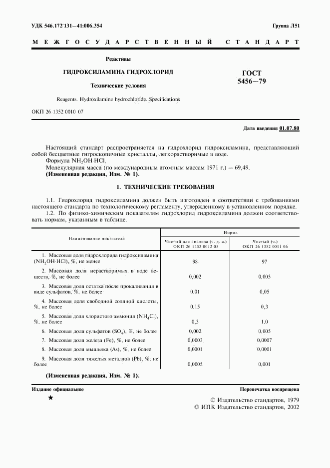 Изменение №1 к ГОСТ 5456-79