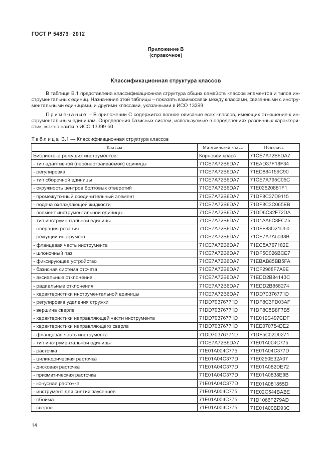 - Настоящий стандарт устанавливает словарь ссылок по инструментальным средствам, а также их описательные свойства и домены значений. Настоящий стандарт устанавливает справочный словарь, содержащий: a) определения и обозначения всех классов инструментальных единиц, а также их характеристики и связанную с ними классификационную схему; b) определения и обозначения всех типов элементов данных, которые представляют характеристики инструментальных единиц и их особенностей; c) определения и обозначения всех областей допустимых значений для описания всех указанных выше типов элементов данных. Для каждого класса, характеристики или области допустимых значений в справочный словарь вводят данные, определенные в настоящем стандарте, и связывают их с компьютерно-зависимыми и удобочитаемыми обозначениями, идентификация которых позволяет получать однозначную ссылку на нее из любого приложения, в котором действует информационная модель ИСО 13399-11