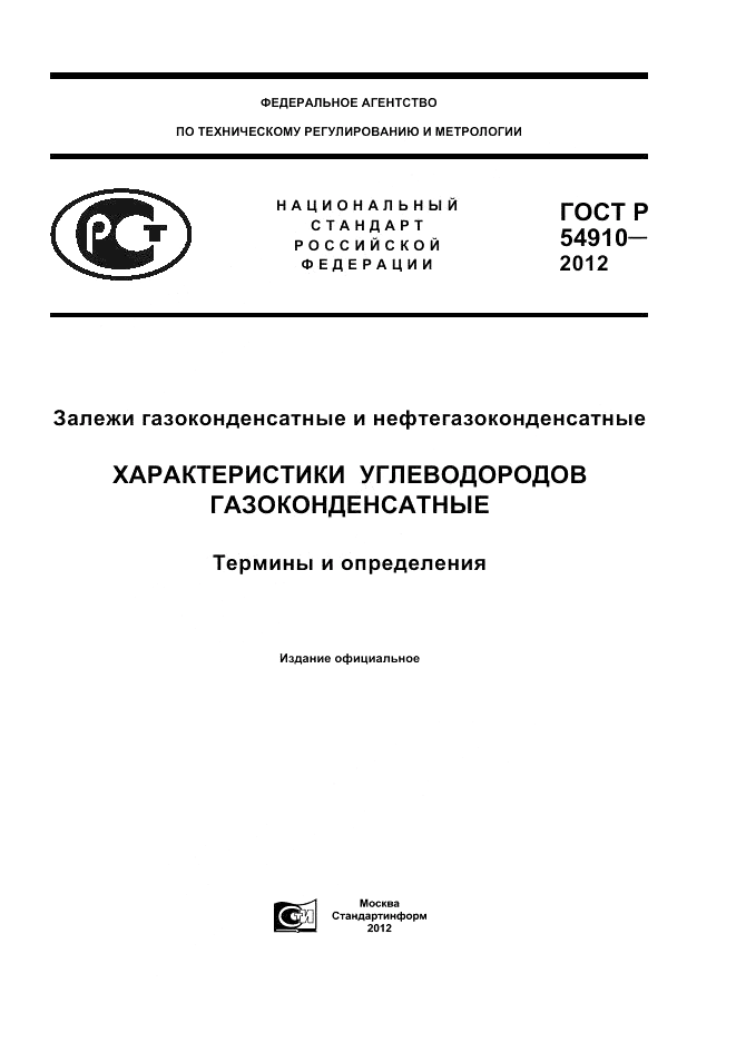 ГОСТ Р 54910-2012 Залежи газоконденсатные и нефтегазоконденсатные. Характеристики углеводородов газоконденсатные. Термины и определения