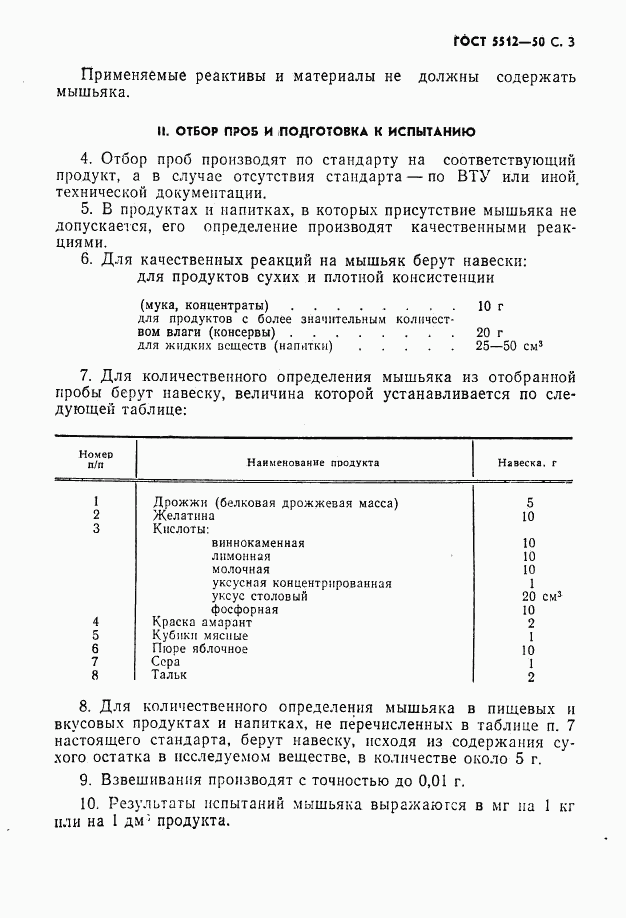 ГОСТ 5512-50 Продукты и напитки пищевые и вкусовые. Методы определения мышьяка