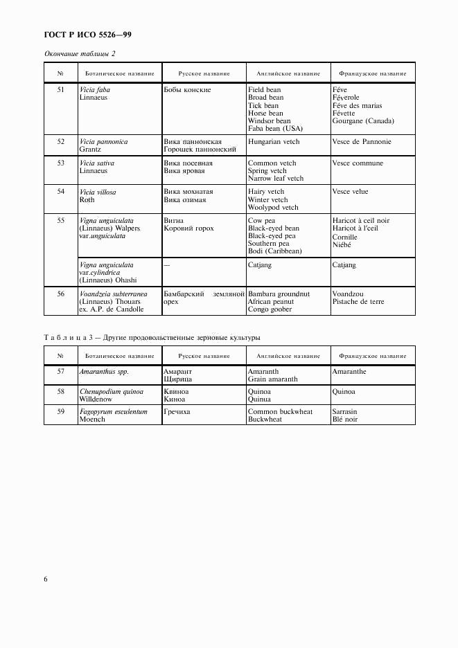 ГОСТ Р ИСО 5526-99 Зерновые, бобовые и другие продовольственные зерновые культуры. Номенклатура