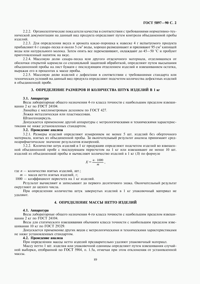 ГОСТ 5897-90 Изделия кондитерские. Методы определения органолептических показателей качества, размеров, массы нетто и составных частей