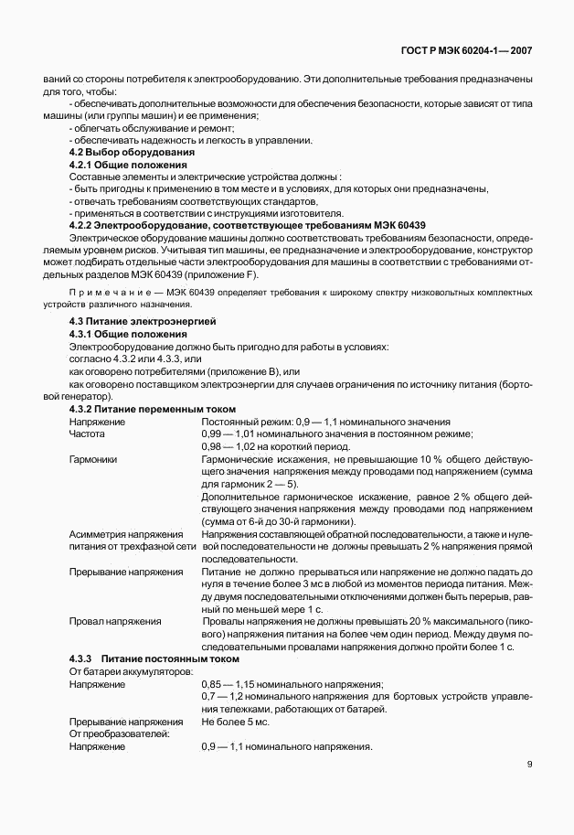 - Настоящий стандарт распространяется на электрические и электронные системы и оборудование для непереносимых вручную во время их работы промышленных машин и механизмов, включая группу машин, работающих вместе в согласованном порядке. Настоящий стандарт распространяется на электрооборудование и его части, работающие от сети переменного тока при номинальном напряжении питания не более 1000 В или постоянного тока не более 1500 В между фазами; номинальный диапазон частот должен быть не более 200 Гц