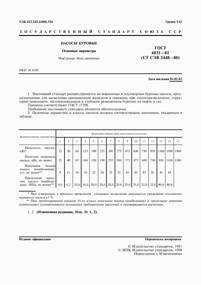 ГОСТ 6031-81 Насосы буровые. Основные параметры
