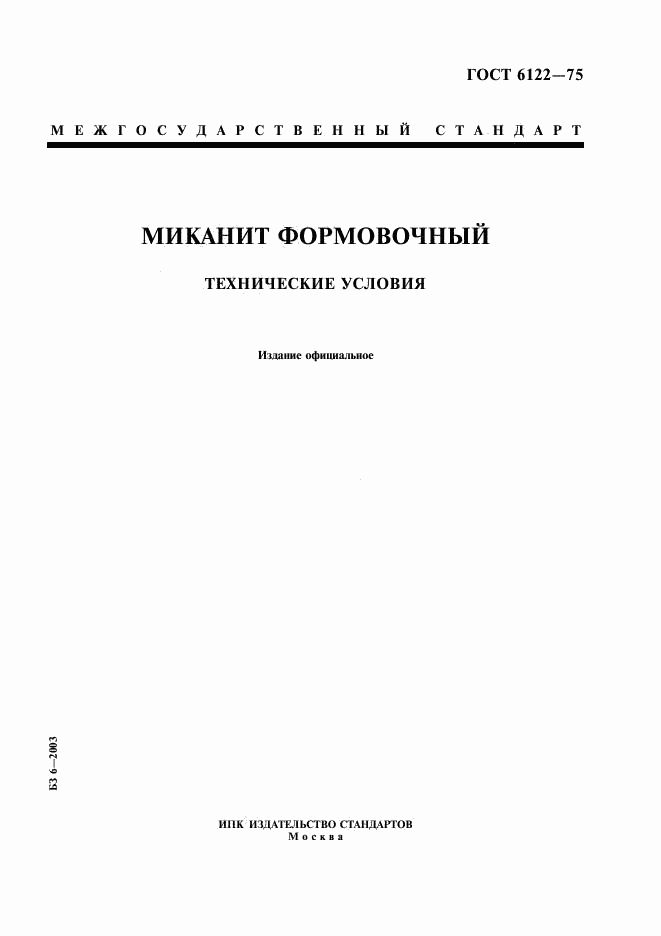 ГОСТ 6122-75 Миканит формовочный. Технические условия