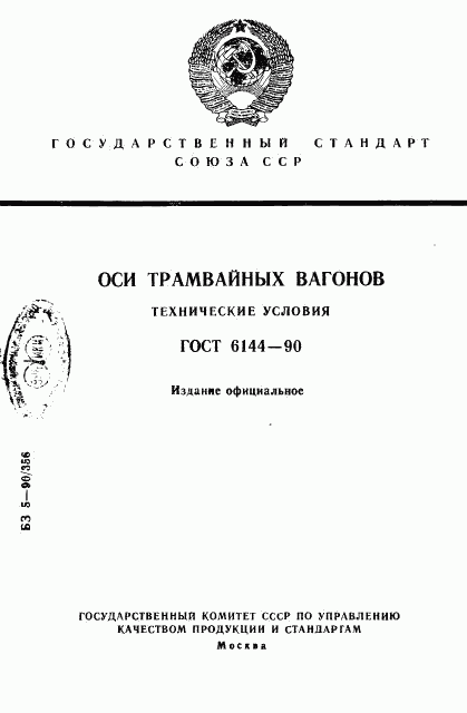 ГОСТ 6144-90 Оси трамвайных вагонов. Технические условия