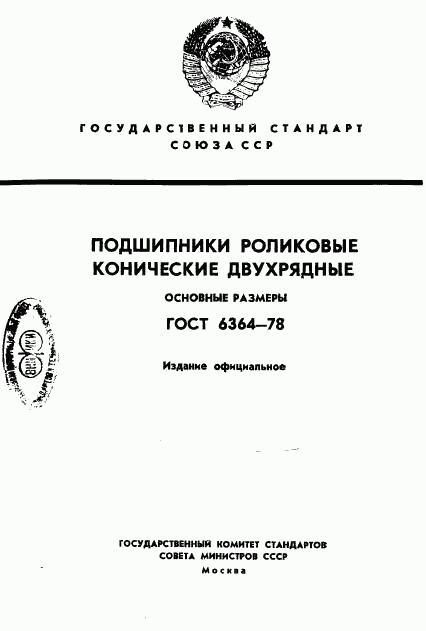 ГОСТ 6364-78 Подшипники роликовые конические двухрядные. Основные размеры