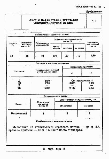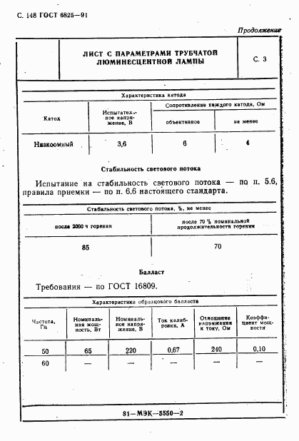 ГОСТ 6825-91 Лампы люминесцентные трубчатые для общего освещения