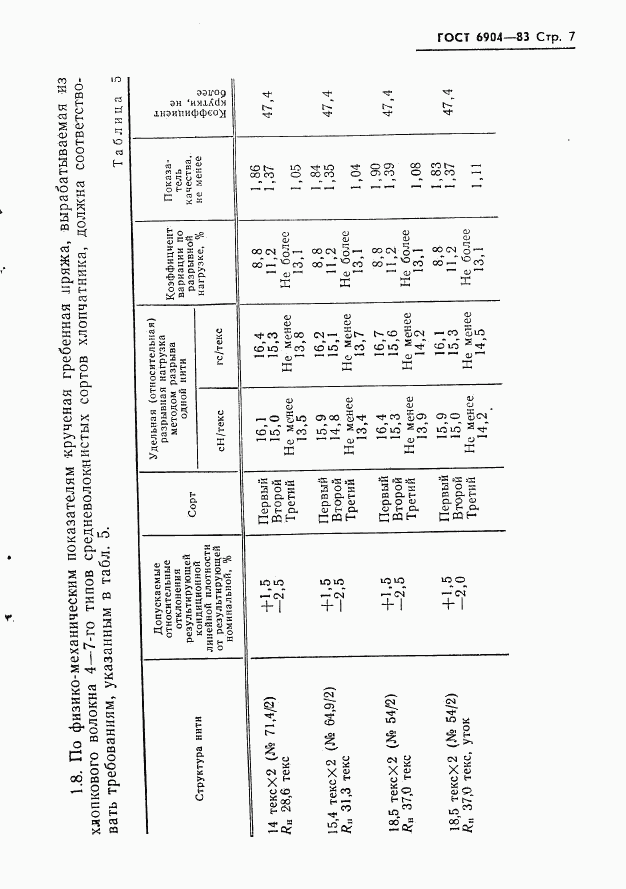ГОСТ 6904-83 Пряжа хлопчатобумажная суровая крученая для ткацкого производства. Технические условия