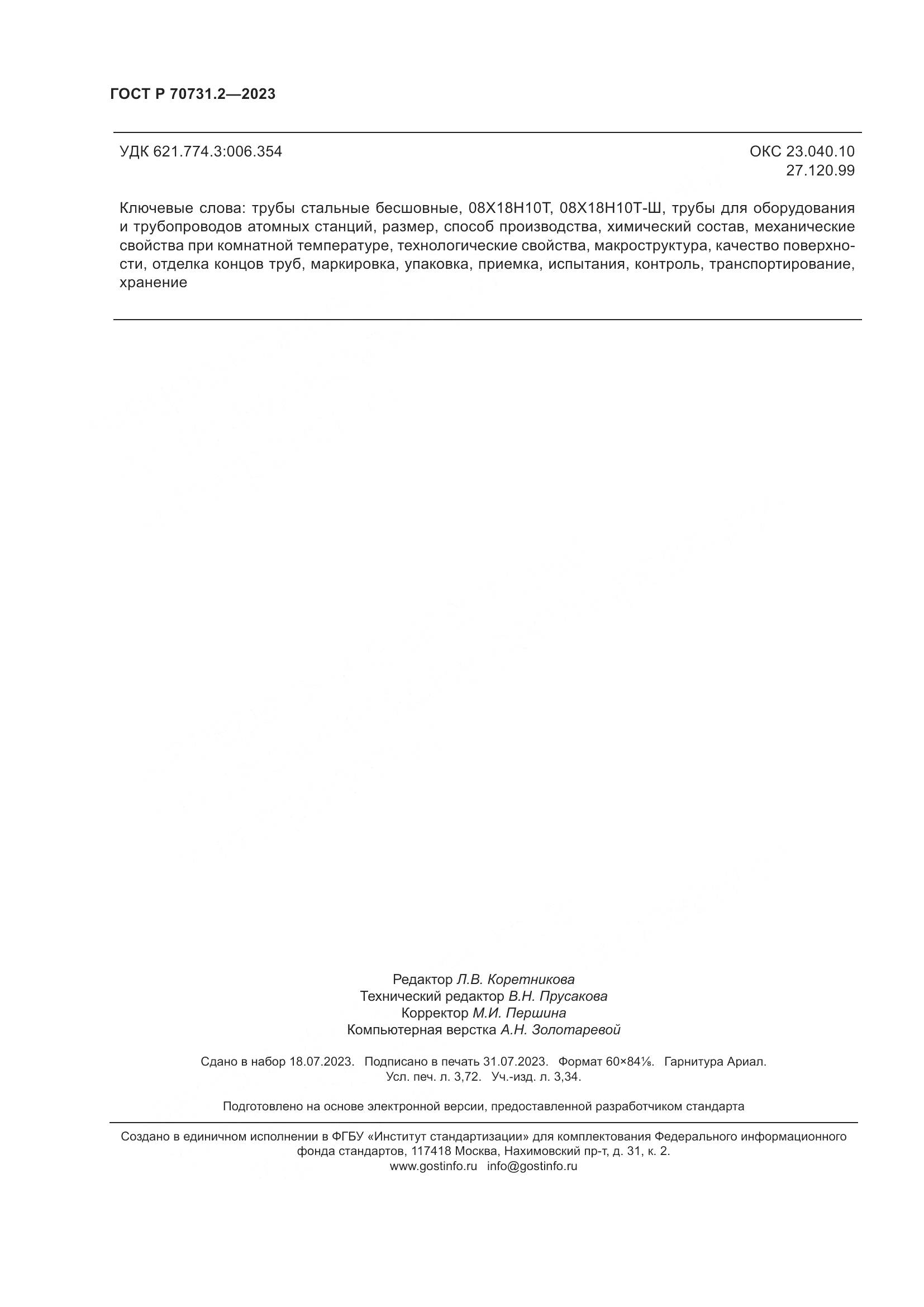 ГОСТ Р 70731.2-2023 Трубы стальные для изготовления оборудования и трубопроводов атомных станций. Общие технические условия. Часть 2. Трубы стальные бесшовные из стали аустенитного класса марок 08Х18Н10Т и 08Х18Н10Т-Ш