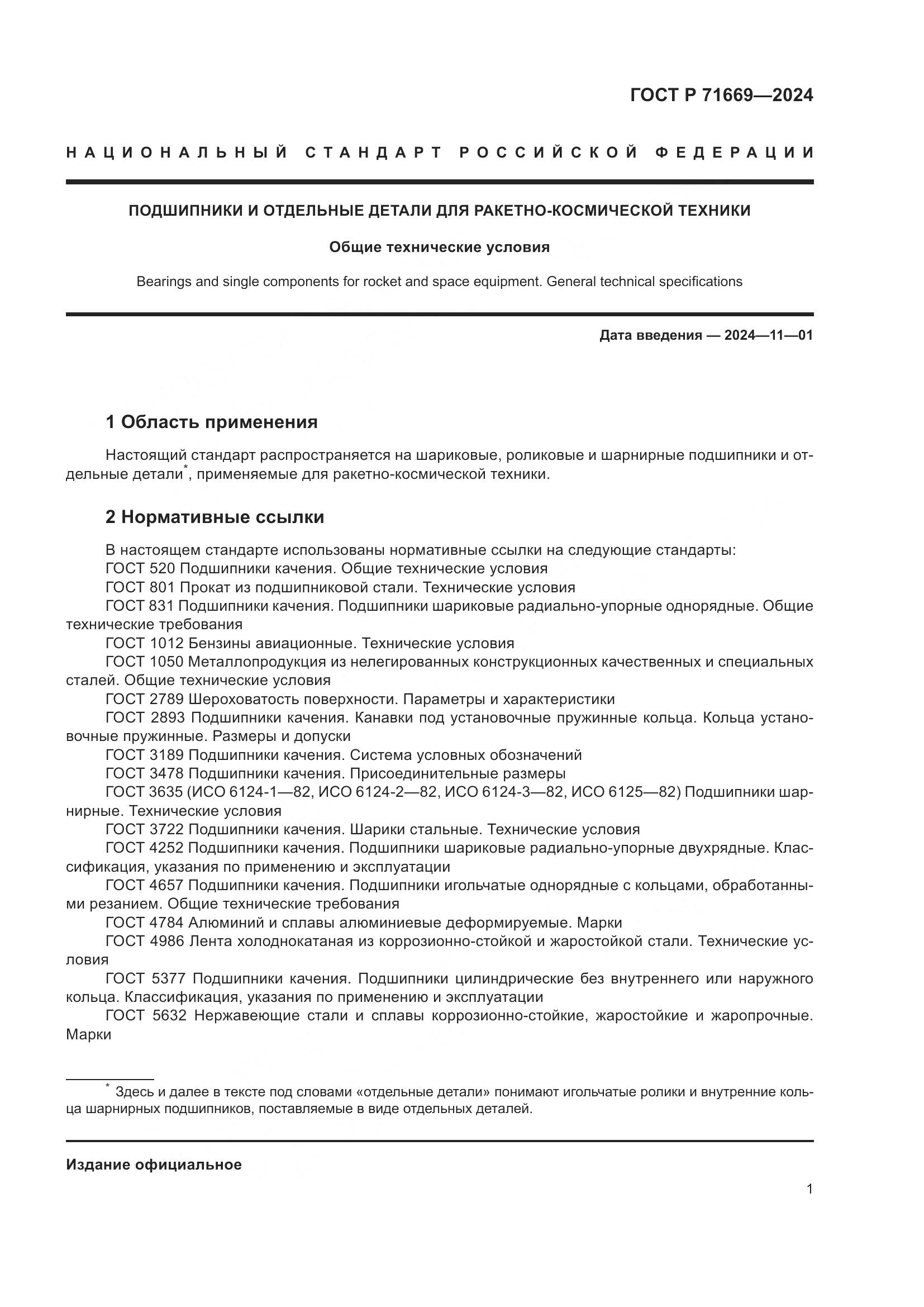 ГОСТ Р 71669-2024 Подшипники и отдельные детали для ракетно-космической техники. Общие технические условия