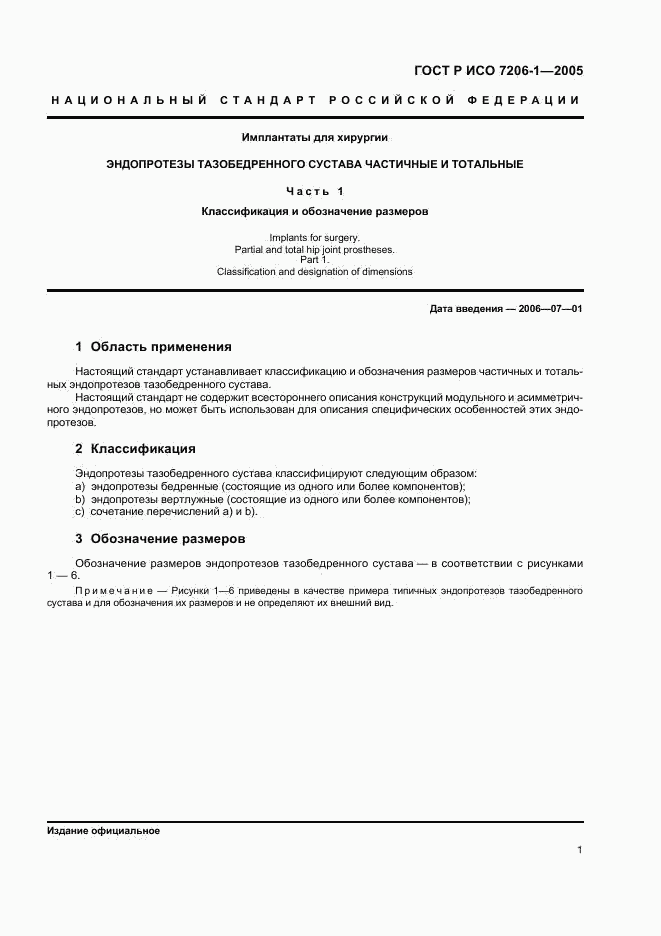 ГОСТ Р ИСО 7206-1-2005 Имплантаты для хирургии. Эндопротезы тазобедренного сустава частичные и тотальные. Часть 1. Классификация и обозначение размеров