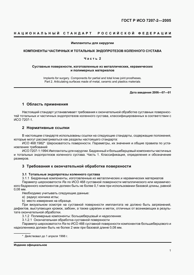 - Настоящий стандарт устанавливает требования к окончательной обработке суставных поверхностей тотальных и частичных эндопротезов коленного сустава, классифицированных в соответствии с ИСО 7207-1