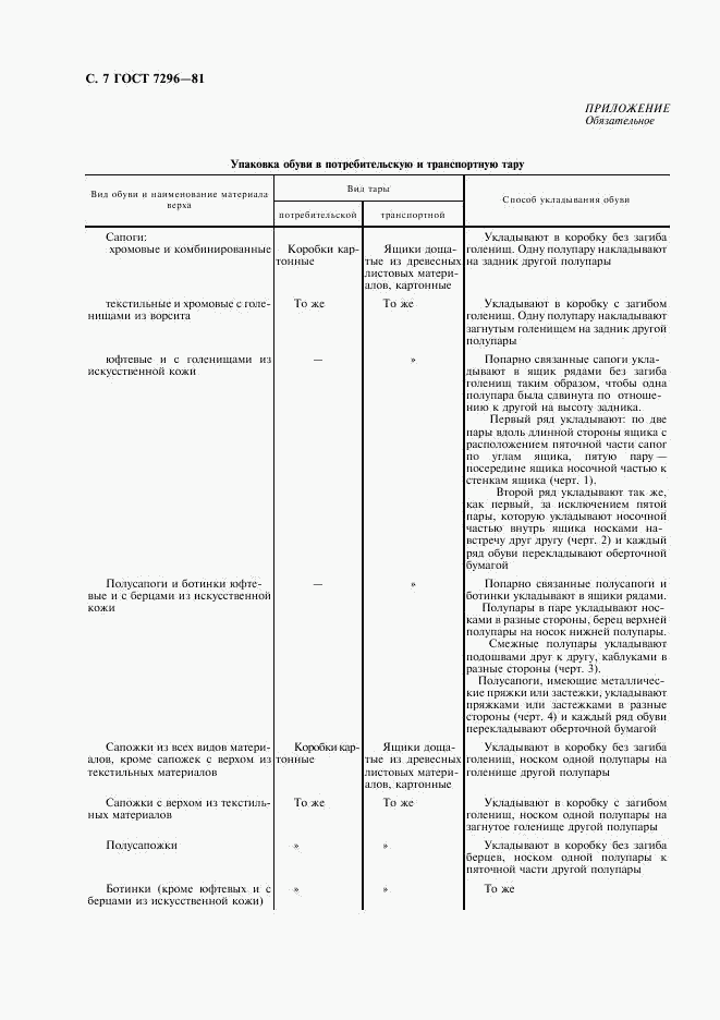 ГОСТ 7296-81 Обувь. Маркировка, упаковка, транспортирование и хранение
