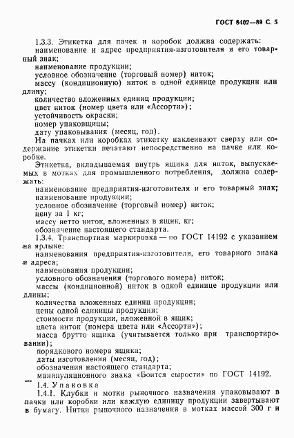 ГОСТ 8402-89 Нитки хлопчатобумажные вышивальные, вязальные и штопальные. Общие технические условия
