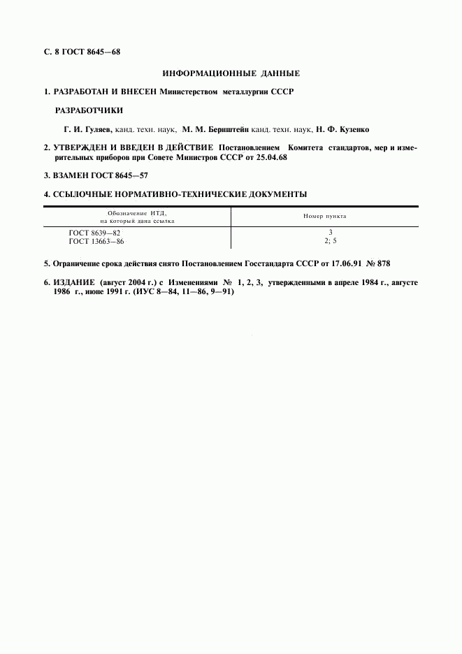 Изменение №2 к ГОСТ 8645-68