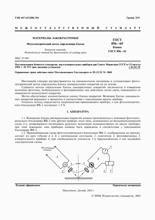 ГОСТ 896-69 Материалы лакокрасочные. Фотоэлектрический метод определения блеска