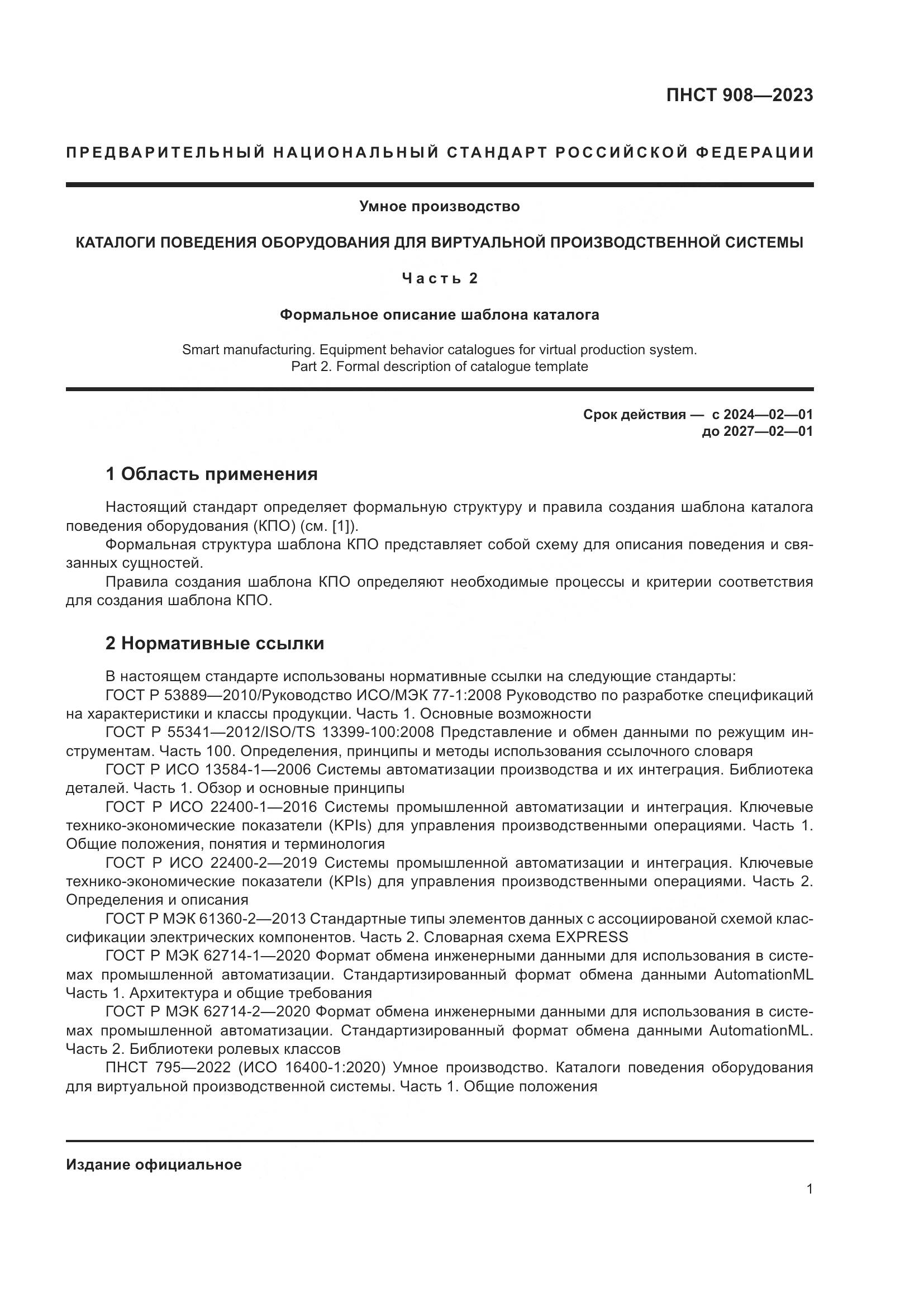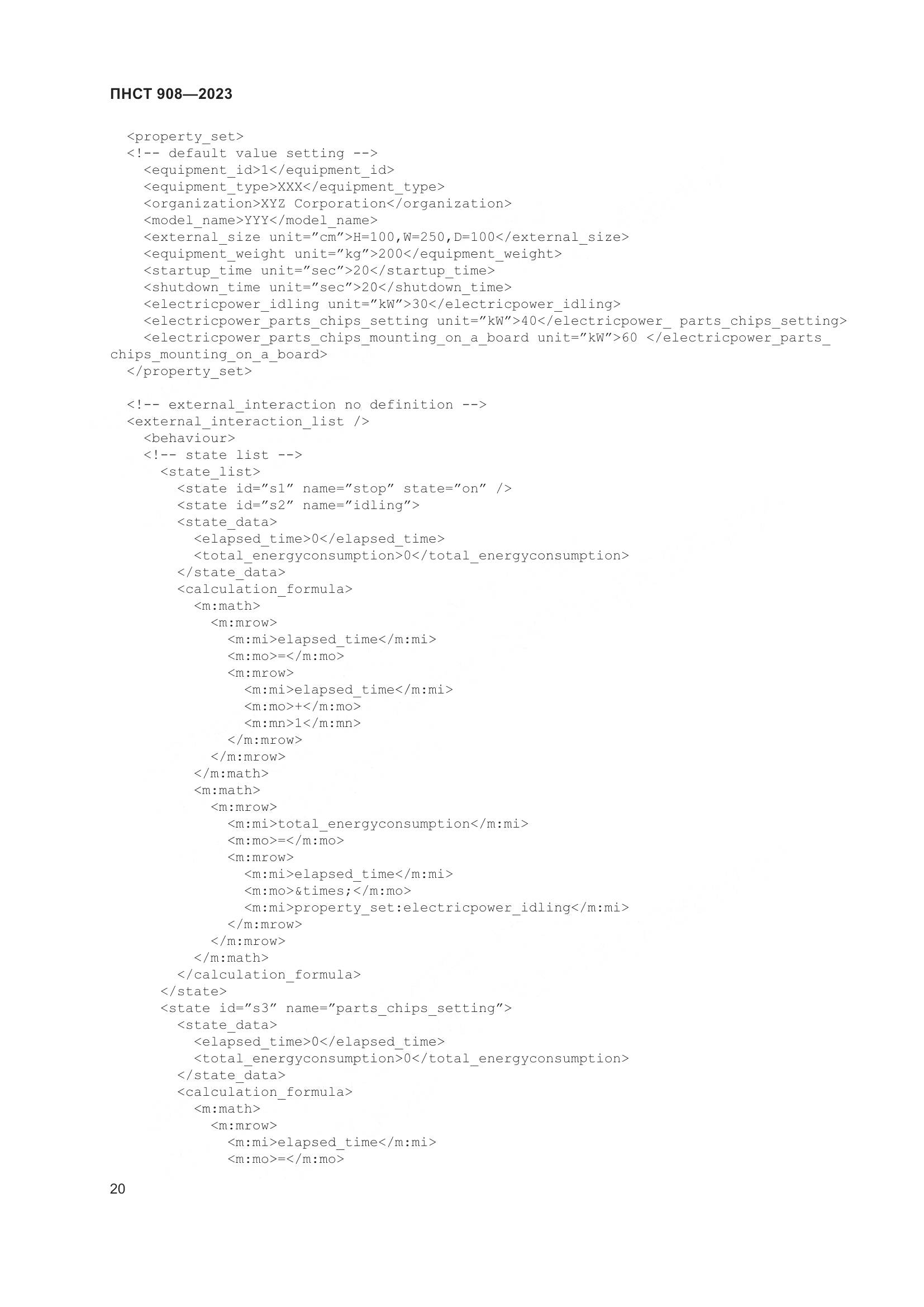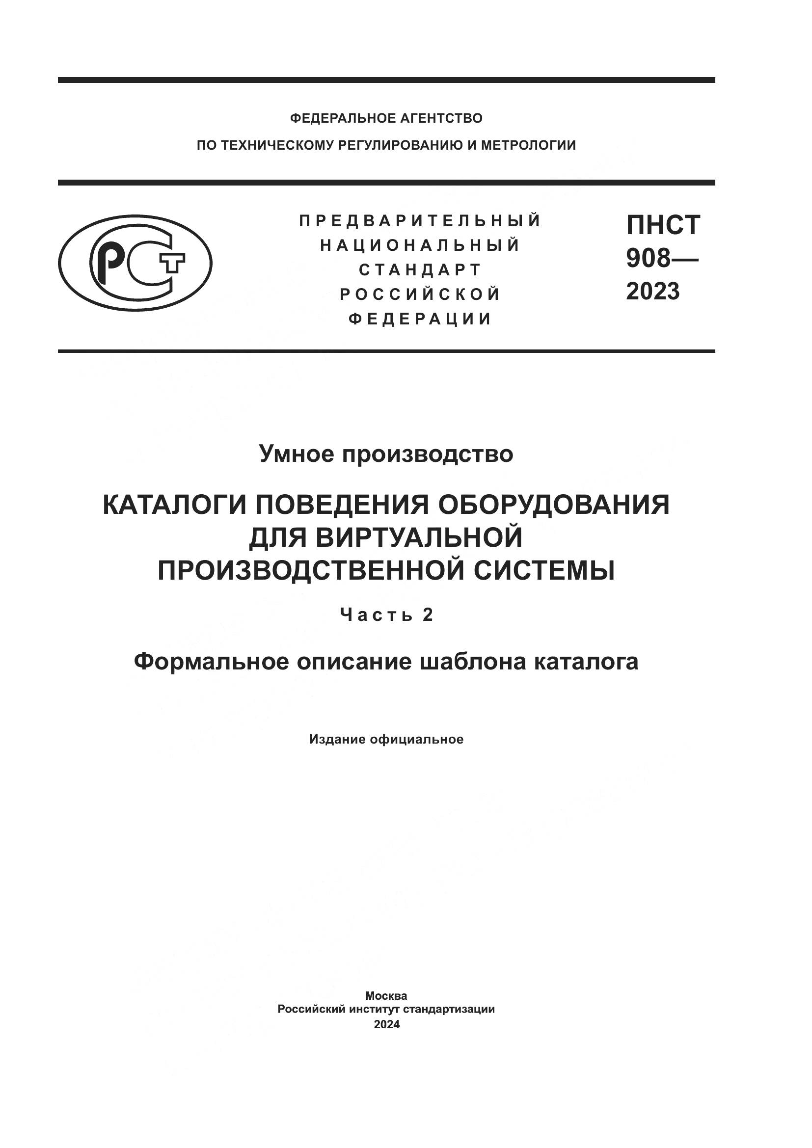 ПНСТ 908-2023 Умное производство. Каталоги поведения оборудования для виртуальной производственной системы. Часть 2. Формальное описание шаблона каталога