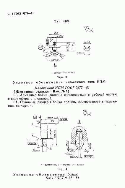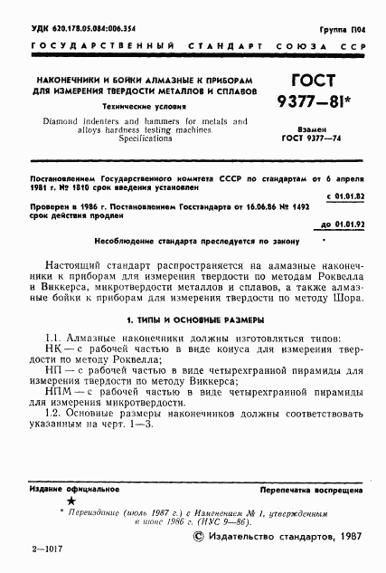 ГОСТ 9377-81 Наконечники и бойки алмазные к приборам для измерения твердости металлов и сплавов. Технические условия