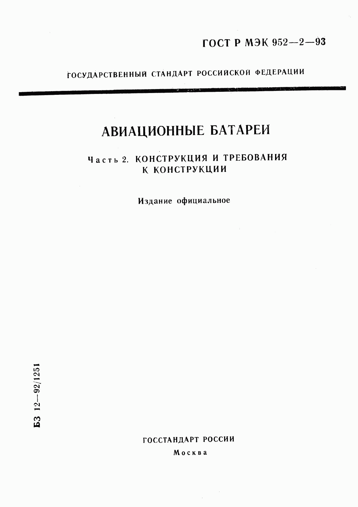 ГОСТ Р МЭК 952-2-93 Авиационные батареи. Часть 2. Конструкция и требования к конструкции